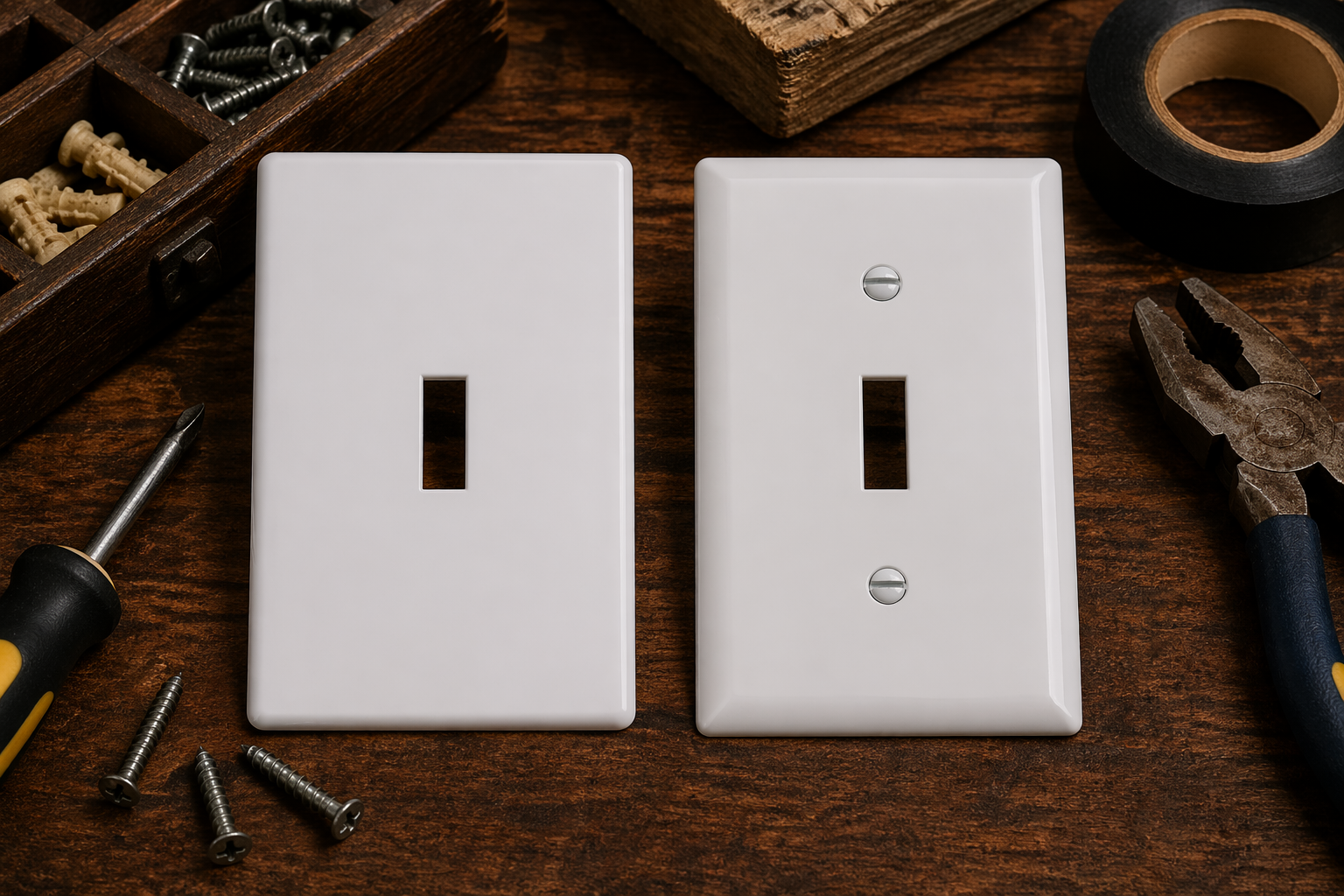 Choose from: 1 to 5 Gang / Colors: White, Lt Almond, and Ivory / Type: Decorator, Toggle, Duplex or Mixed
